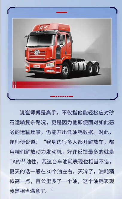 【第一商用車網 原創(chuàng)】憑借解放動力CA6SM4燃氣發(fā)動機一年半卓越的動力性與出色的節(jié)能表現,他并沒有像往常那樣承受著來自油價、運價方面的諸多焦慮。