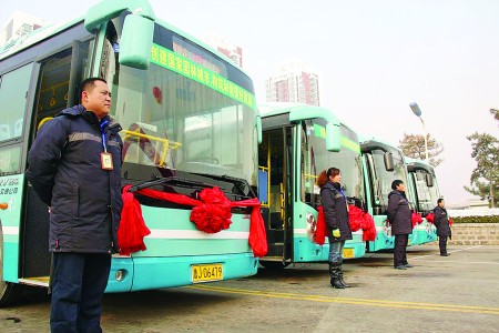12月17日,泰安市公交公司舉行了公交車5路、14路等4條線路的新車運營發(fā)車儀式。目前泰城5路、14路、19路、36路車共投入50臺新車運行,這些新車為十米長、使用天然氣為動力的“綠色公交”。