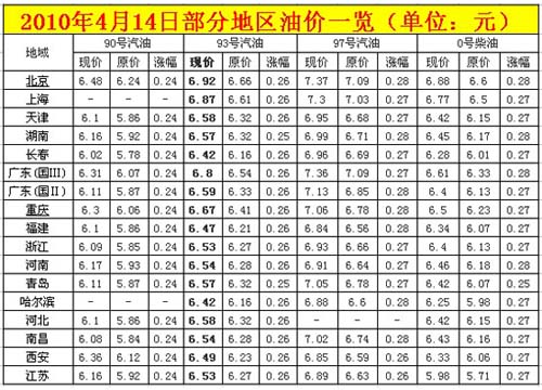 4月14日起油價上調(diào) 部分地區(qū)油價一覽