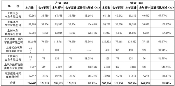 上海汽車集團(tuán)股份有限公司2010年1月份產(chǎn)銷快報(bào)數(shù)據(jù)如下:注:上表數(shù)據(jù)僅為公司產(chǎn)銷快報(bào)數(shù)據(jù)。