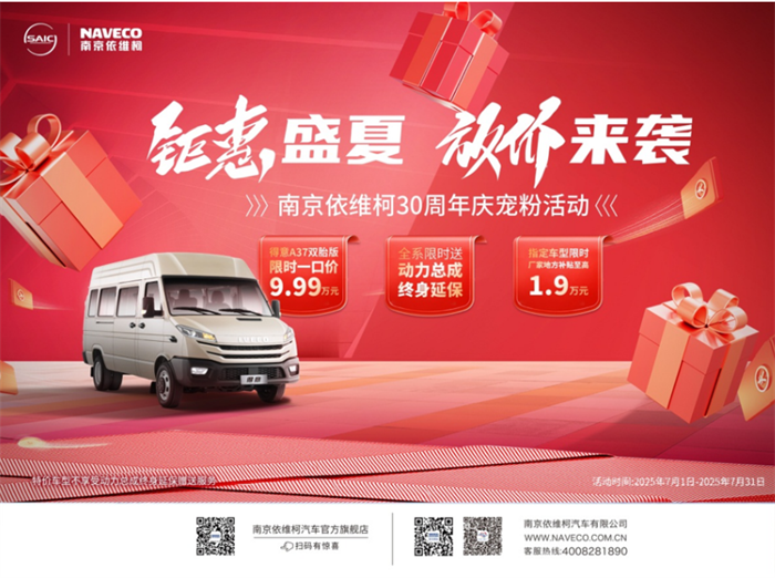 0今年,南京依維柯迎來了輝煌的30周年里程碑。為感恩回饋廣大用戶的長期信賴與支持,南京依維柯即日起至7月31日期間,盛大開啟“鉅惠盛夏,放價(jià)來襲”30周年慶寵粉活動(dòng)。本次活動(dòng),推出限時(shí)一口價(jià)、終身延保、高額補(bǔ)貼等多重福利,旨在通過實(shí)實(shí)在在的優(yōu)惠,讓更多消費(fèi)者體驗(yàn)到依維柯產(chǎn)品的卓越品質(zhì)與專業(yè)服務(wù)。
