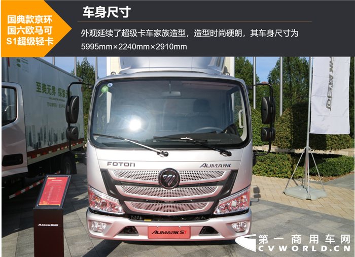 國(guó)典款國(guó)六b歐馬可S1超級(jí)輕卡在外觀上延續(xù)了超級(jí)卡車家族造型,造型時(shí)尚硬朗,其車身尺寸為5995mm×2240mm×2910mm。
