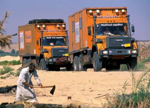 依維柯環(huán)球卡車旅行車隊由意大利依維柯公司出資建成,這項環(huán)球旅行探索之行的活動始于1995年,車隊穿越過歐亞大陸,北美,南美,非洲等地,是真正意義上的穿越陸地之旅。有相當多的國人其實不知道,這個著名的旅行車隊也曾經(jīng)造訪過中國,時間是1999年的8月下旬。