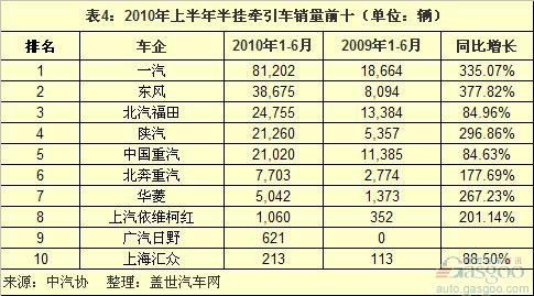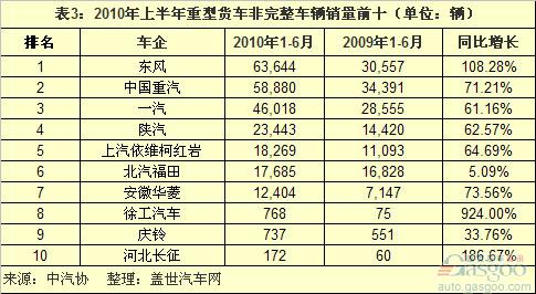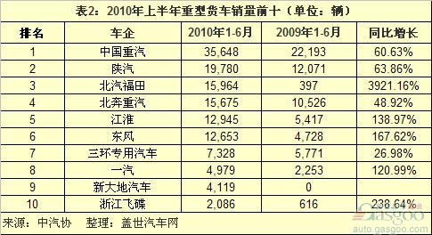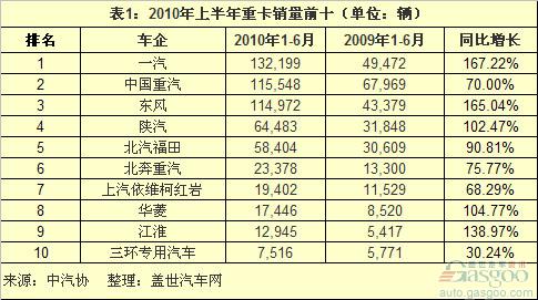 2010上半年中國重卡銷量前十車企分析
