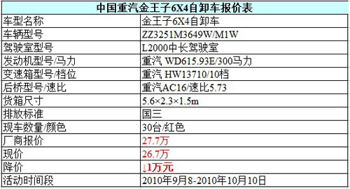 金九“放價” 重汽金王子自卸車猛降1萬