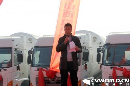山西萬志物流有限公司總經(jīng)理助理李旭東先生作為用戶代表發(fā)言,萬志物流選購廣汽日野700牽引用于LNG低溫液體半掛運輸。