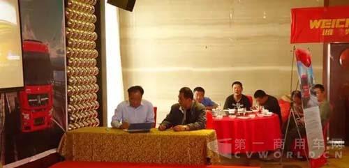 此次活動現(xiàn)場,山東分公司經(jīng)理要建偉對客戶比較擔心的車輛性能、安全、可靠性以及售后服務等問題都做了一一講解,尤其是北奔重汽提出的“同步全程跟蹤服務”的舉措,可充分保障車輛的高出勤率和客戶的經(jīng)濟利益,打消了客戶對售后服務的顧慮,消除了客戶購買北奔重卡產(chǎn)品的后顧之憂,同時也向在場的客戶介紹了北奔重卡6月份即將推出的新產(chǎn)品V3ET高效版物流牽引車。濰柴動力股份有限公司臨沂辦事處主任錢廣省對北奔V3ET匹配濰柴13升480與530馬力發(fā)動機動力強、省油的特點做了說明。